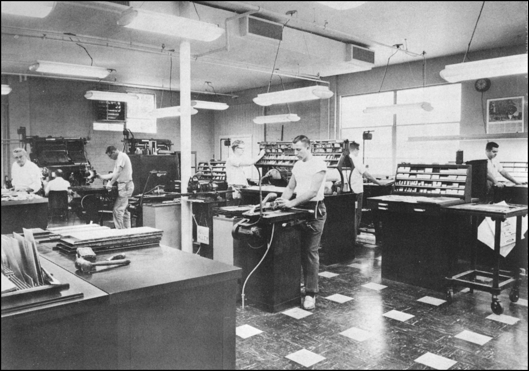 The composing room ad division consisted of Assistant Foreman Floyd A. Douglas, Robert Schaefer and Gunars Kulikovskis. Circa.1959