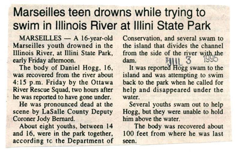But it was a local tragedy that she recalls the most. A Marseilles cousin, Danny Hogg, drowned in the Illinois River that summer.