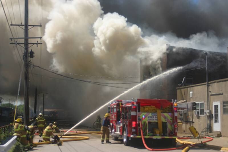 The blaze consumed the former Marseilles Foundry and the Iverson Welding Shop on Commercial Street. Both are two- and three-story buildings dating to about the early 1900s, but abandoned in recent years.