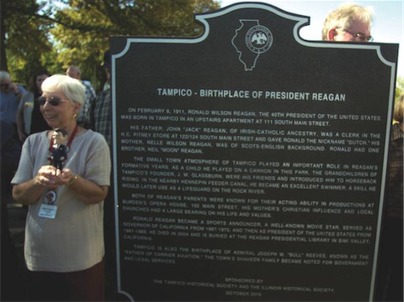 The historical marker, which pays homage to Reagan and two other notable Tampico residents, will sit under the shade of a chestnut in the small park.