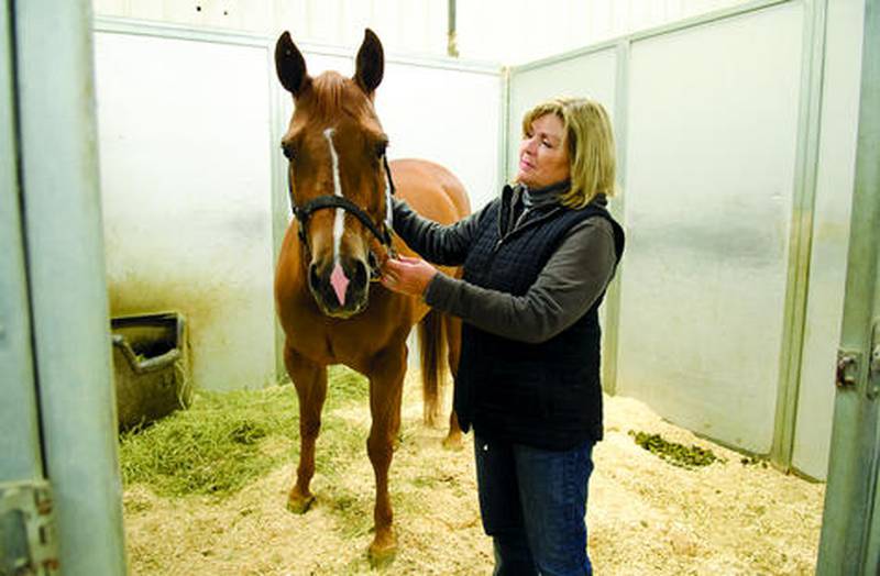 “She’s a little more thoroughbred type,” Cathy said, standing next to the horse, a playful 5-year-old bay mare who enjoyed chewing on her lead rope as spectators admired her.