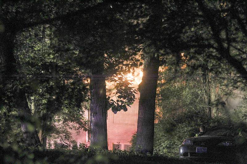 Neighbors and firefighters said the house was large and rested on multiple acres. A gated driveway led to the house, which was hidden by a line of trees along Algonquin Road.