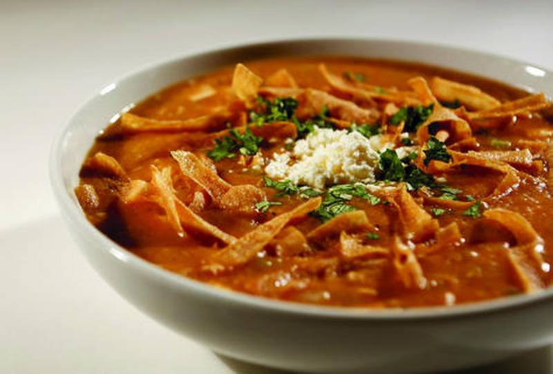 11. Chicken tortilla soup: Saute chopped onion and bell pepper until lightly golden, then add a container of fresh salsa and chicken broth and bring to a boil. Add several fresh corn tortillas torn into pieces, and then use an immersion blender to puree everything in the pot. Bring to a gentle simmer and add chopped or shredded chicken, more diced onion and pepper. Serve with crumbled fresh cheese, sour cream, tortilla strips and diced onion and cilantro.
