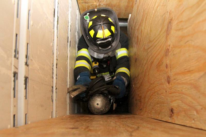 MORRIS – Local firefighters crawled through narrow hallways on hands and knees unable to see, feeling their way through a wall before having to shimmy through electrical wires.