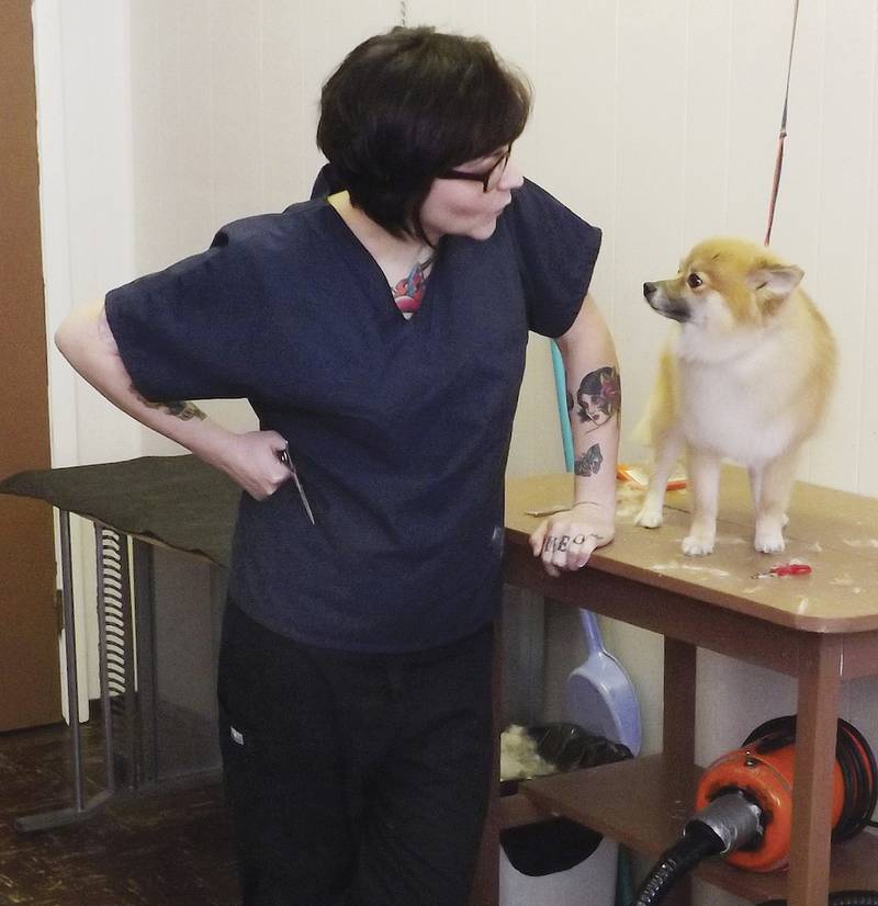 Sams gave her own dog, Yettie, a mohawk and dyed its hair blue. She trimmed a shih tzu to have a Fu Manchu-style mustache, and Frost the Pomeranian looked like a fox after Sams was through.