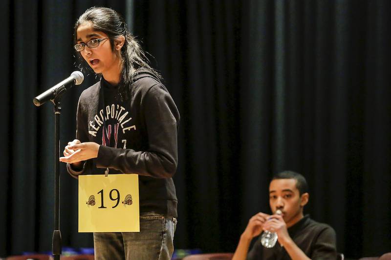 Kamineni had to battle 14 rounds with Brooks Middle School eighth-grader Christopher Bavaro, who fell in the 42nd round on the word “dachshund” and got second place.