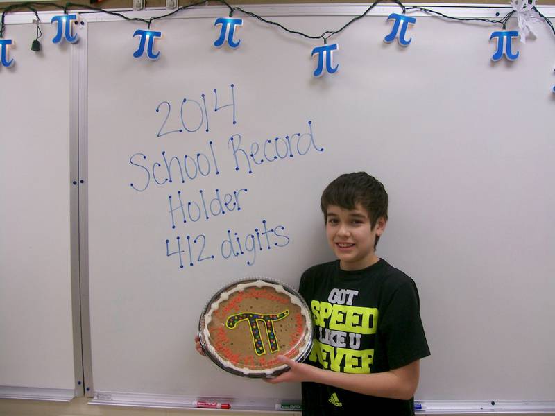 Donovan correctly recited 412 digits, breaking the school's record set in 2010. His closest competitor was Ciara Mulcahy, also in seventh grade. She memorized 253 digits.