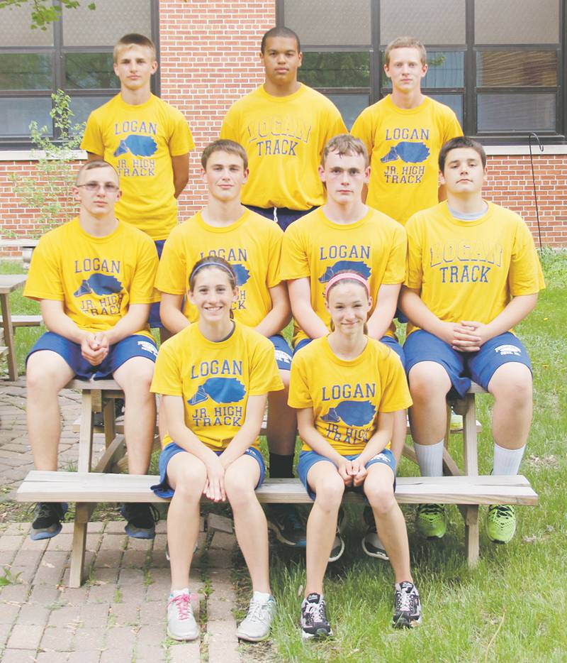 Princeton Logan Junior High School qualified 10 athletes for the IESA 2A State Track and Field Meet last weekend. They include (front row, from left) Anna Murray and Shaela Hayes; (second row) Brent Hendrickson, Garrett Allen, Alex Janssen and Alex Peck; (and back row) Drake Davis, Chase Tatum and Kendile Whitford. Absent was Brett Schenck. Murray placed seventh in the hurdles.