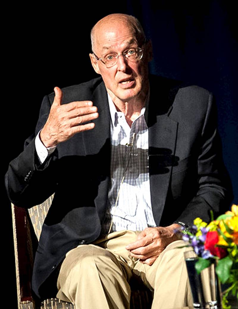 Former U.S. Secretary of the Treasury (2006-08) Henry "Hank" Paulson, Jr. was interviewed on the BHS auditorium stage in front of attendees of all ages, former peers, and his wife, Wendy. Paulson returned home to Barrington Hills a few years ago, having graduated from BHS in 1964.