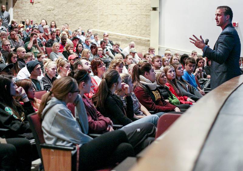 CRYSTAL LAKE – A capacity crowd filled the Prairie Ridge High School auditorium Wednesday night to listen to former NBA player Chris Herren speak about substance abuse.