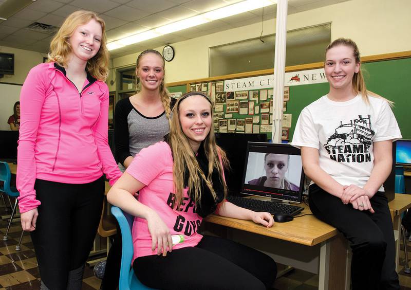 Jamie Huennekens, 17, Kirsten Stage, 17, Brittany VanOnsten, 16, and Jana Michels, 17, created the video in their media publications class.