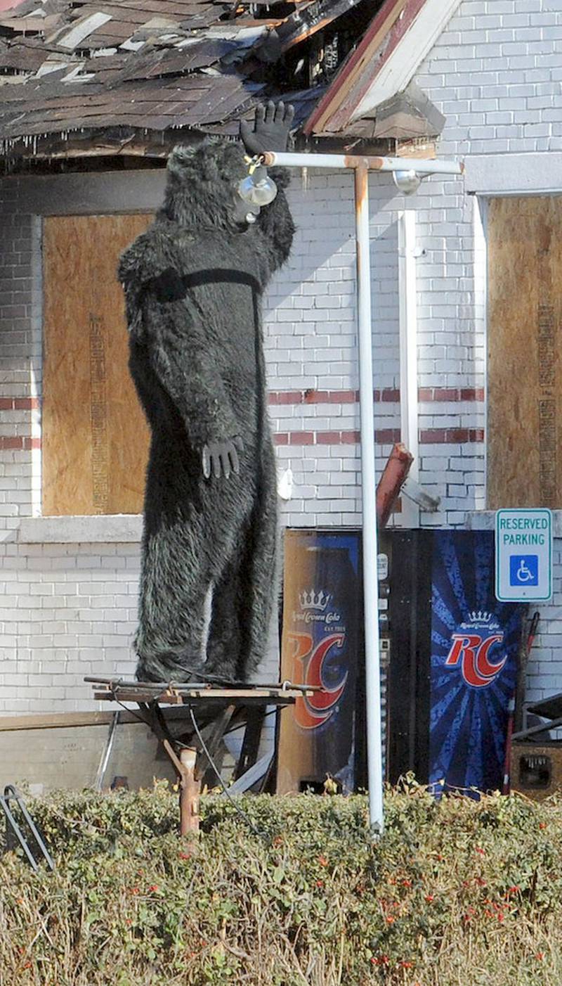 The iconic gorilla that stood in front of the old showroom at 9828 W. 55th St. will stay where it is until the old showroom can be rebuilt, he said.