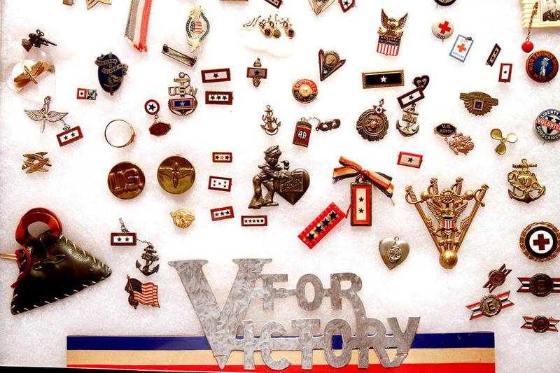 The Hutsons’ collection includes flags and other items, ranging from posters to sheet music to pins related with the blue and gold stars.