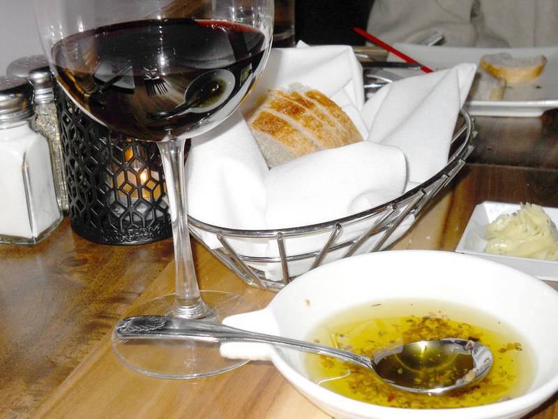 Our helpful server had filled us in on the restaurant’s farm-to-table approach, noting that the beef is grass-fed, and the emphasis is on organic ingredients. All the pastas are homemade in-house, as is the lavender-honey butter that arrived with our warm bread and an accompaniment of olive oil mingled with herbs, garlic and minced olives.