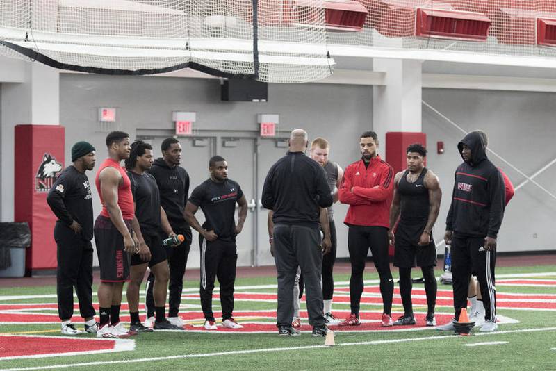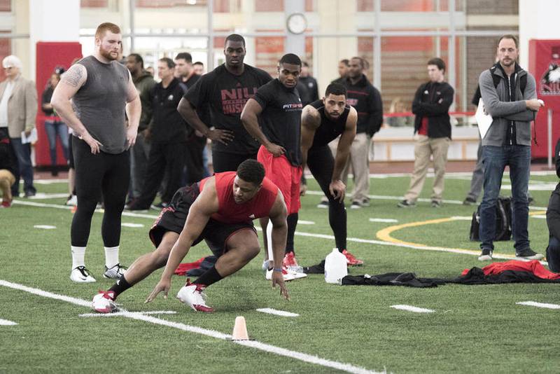 The lineup of players during the Pro Day consisted of seniors from last year’s team, along with linebacker Rasheen Lemon, running back Cameron Stingily and safety Dechane Durante. Lemon did not play for the Huskies last season after being arrested in the spring for domestic battery, and Stingily and Durante each finished their playing days at NIU in 2014.