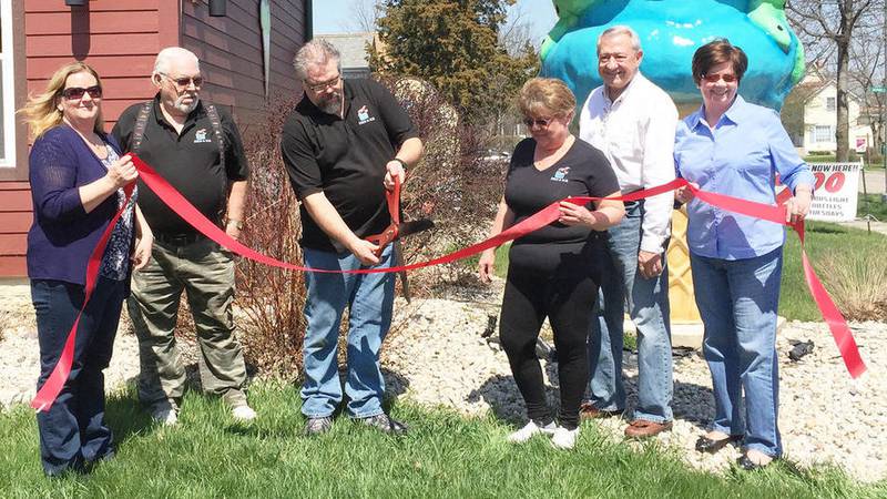 Pictured (from left) are Colleen Helfers of the Marengo-Union Chamber of Commerce; George Steinke; Fire & Ice owners Joe and Lolly Steinke; and Chamber Board of Directors members Randy Hauschildt and Deborah Hauschildt.
