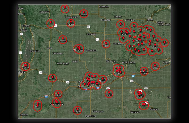 Click here to see a map of sirens within Sauk Valley Media's coverage area. A halo represents a siren's maximum range – 1 mile in any direction – but that range can be affected by myriad atmospheric conditions, such as wind velocity and direction, humidity, and precipitation.