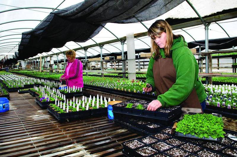 Every day, she, previous owners Terry and Bonnie Nichols, and various friends and family members, water, transplant, move, and prepare hundreds of trays and boxes of developing flowers and vegetables.