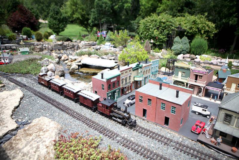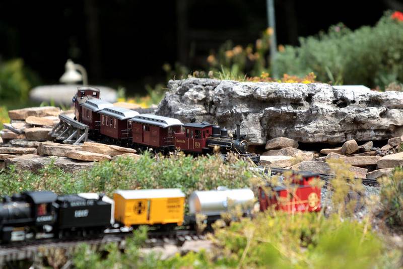 It took more than 1,800 feet of train track, 150 tons of rock and 3,300 gallons of water for the koi pond to complete the garden. The track is left out year-round because of a less-corrosive nickel-silver finish, but the buildings, cars and figurines are brought inside during the winter.