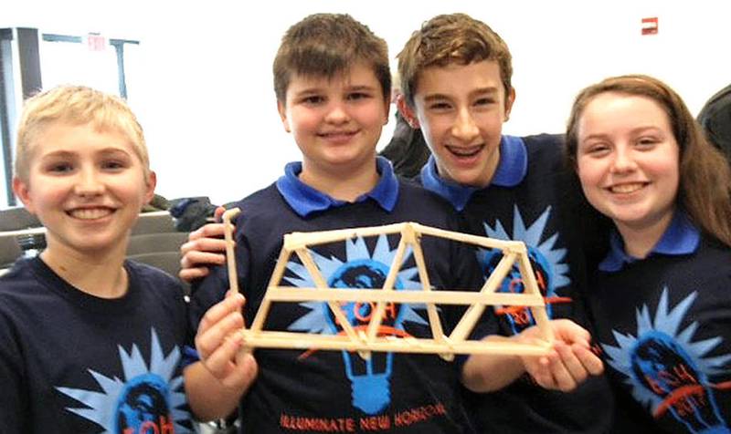 FOX RIVER GROVE – A 68-gram bridge made by four Fox River Grove Middle School students supported 136.5 pounds, earning the team first place in the "lifts the most weight overall" category at a design contest for middle school students.