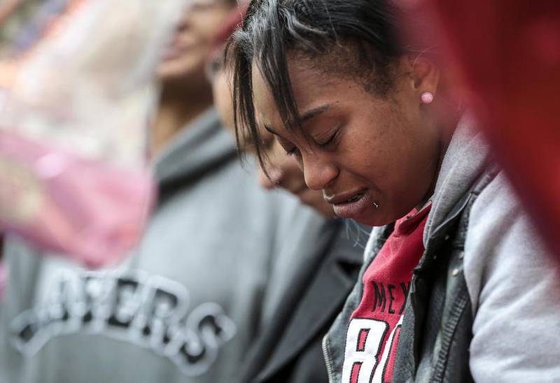 Markesha Walter came Thursday morning from Chicago to place a stuffed giraffe near the street as “a show of respect.”