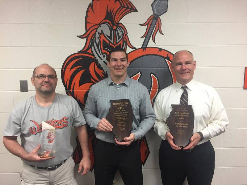 The next day, Lincoln-Way West coach Brian Glynn was recognized as Class 3A Coach of the Year, and Warriors athletic director Ted Robbins was honored as the Class 3A Administrator of the Year. In addition, Lockport’s Matt Bartley was selected as Class 3A Assistant Coach of the Year, and St. Rita’s Austin O’Connor, who lives in Lockport, was named as the organization’s Class 3A Outstanding Wrestler of the Year.