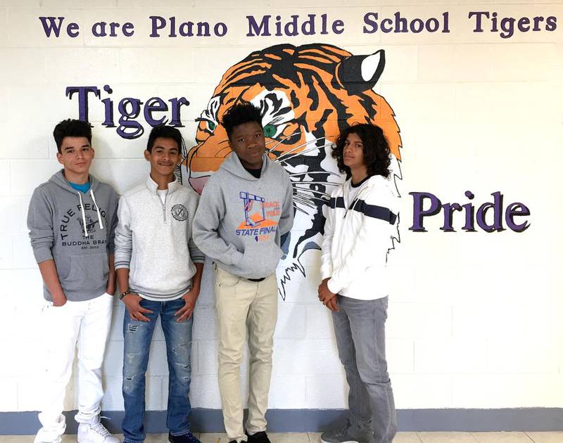Congratulations to the four Plano Middle School eighth-graders who qualified out of the Class AA IESA LaSalle-Peru Track and Field Sectional on Saturday. Eighth-graders Shamaar Bowen, Sebastian Estrada, Martin Diaz and Aldo Gomez qualified in the 400-meter relay, while individually, Estrada qualified in the high jump after he cleared 5-foot-6. The Class AA IESA State Meet will take place at the Eastside Centre in East Peoria on May 19-20. Pictured are the qualifiers (from left): Aldo Gomez, Martin Diaz, Shamaar Bowen and Sebastian Estrada.