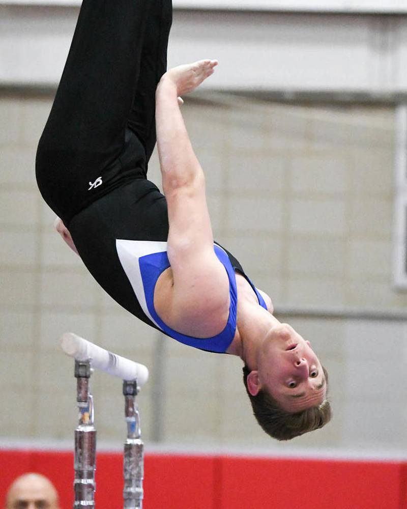 The sophomore tied for fifth on parallel bars (9.1) in the individual finals May 13 at Hinsdale Central to earn a top-five, all-state medal.