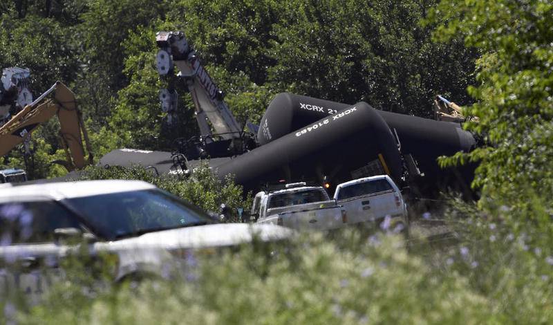 Train derailments in recent years nationwide have proven to be worse than Friday’s. In 2016, a Union Pacific train carrying crude oil derailed in Oregon’s Columbia River Gorge near Mosier, which sparked a large fire. In 2015, 21 cars of a 105-car Burlington Northern Santa Fe train carrying oil from North Dakota derailed three miles outside Galena, causing two to burst into flame.