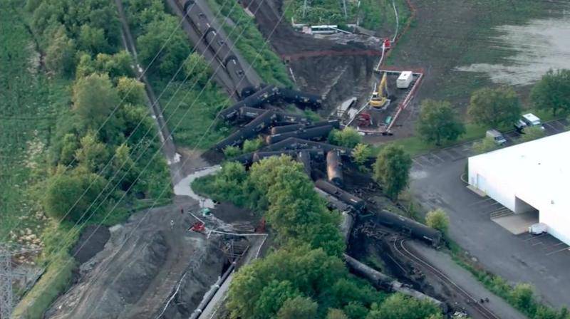 The derailment occurred on CN railroad tracks between Route 59 and 143rd Street.
