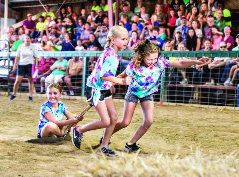 The 4-H Pink Ladies team competes Thursday in the scoop shovel race during the Ag Olympics at the Lee County 4-H Fair and Junior Show. The annual fair is back this weekend, through Sunday, at the fairgrounds at 1196 Franklin Grove Road in Amboy. Events include the carnival, tractor and truck pulls, a rodeo, daily judging and livestock shows, free kids activities, bingo, a magic show, corn boil, corn-husking contest and big wheel races. There will be daily ticket and wristband specials for the carnival. New this year: Fast Action Motorsports remote control car racing for all ages, and shows by Starlight Dance Studio and Legacy Martial Arts. The fair opens at noon daily. Admission is $5 through Saturday, and $2 Sunday, and free for kids 12 and younger. Find Lee Co. 4-H Fair & Jr. Show on Facebook for a schedule or more information. (Michael Krabbenhoeft)