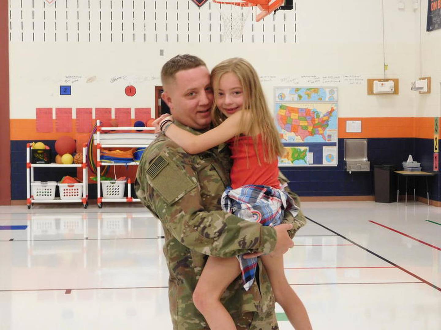 “The anticipation was killing us to tell her, but her face made it totally worth it,” Carmela said. “It’s amazing to have him home. “Especially with a kid, it hard having him away. It’s like you’re always missing something. Every time you leave the house, it’s like you’re forgetting something, but it’s him not being there. Now it’s like a completion, everything is back together.” (Megan Schuller)