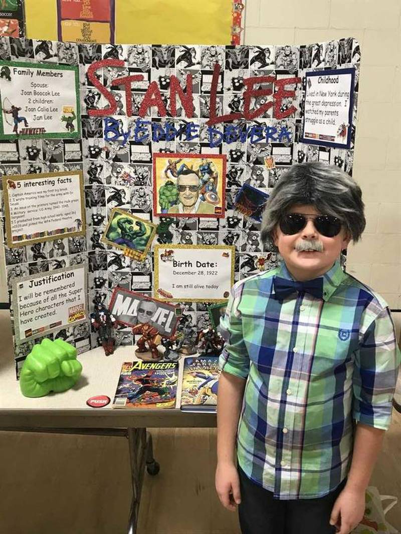 Students love the opportunity to learn about a person in which they are interested. Eddie Devera, from Jenna Renken’s third-grade class, dressed up as Stan Lee.