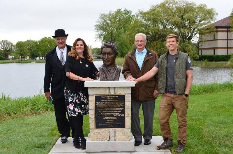 The Cary Grove Historical Society unveiled a sculpture of the village's founder, William Dennison Cary, on Sunday at Jaycee Park.