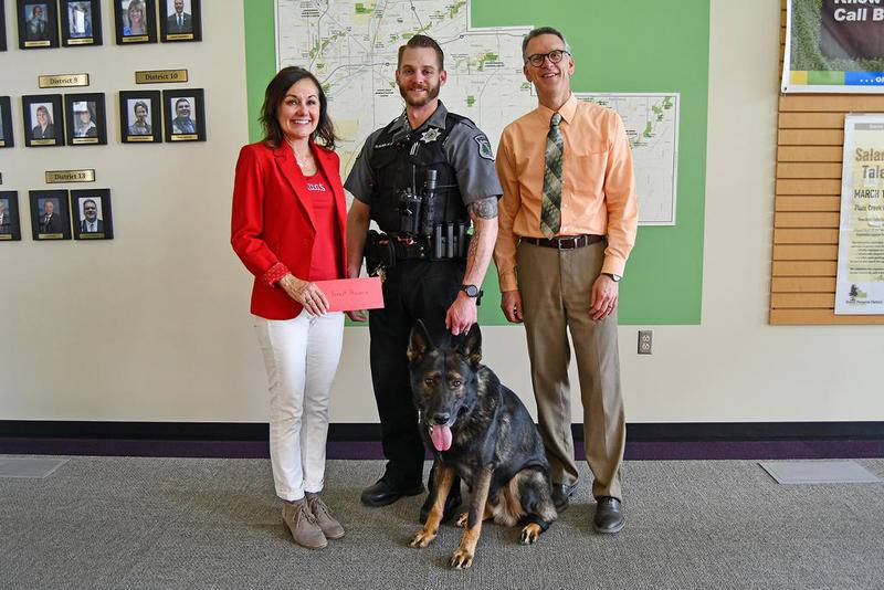 Shorewood HUGS donated $2,000 to the Forest Preserve District of Will County to be used for the care and training of the district’s K-9, Jullo.