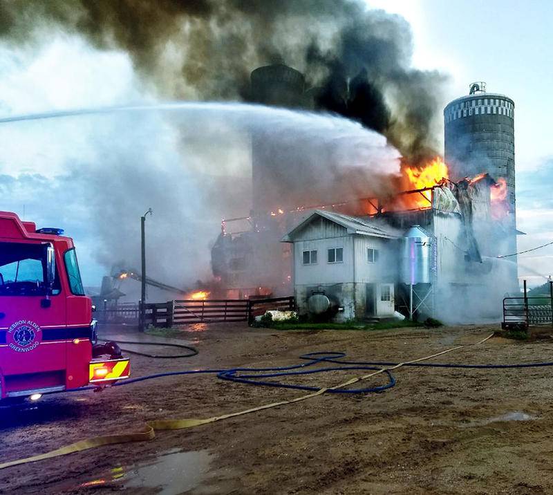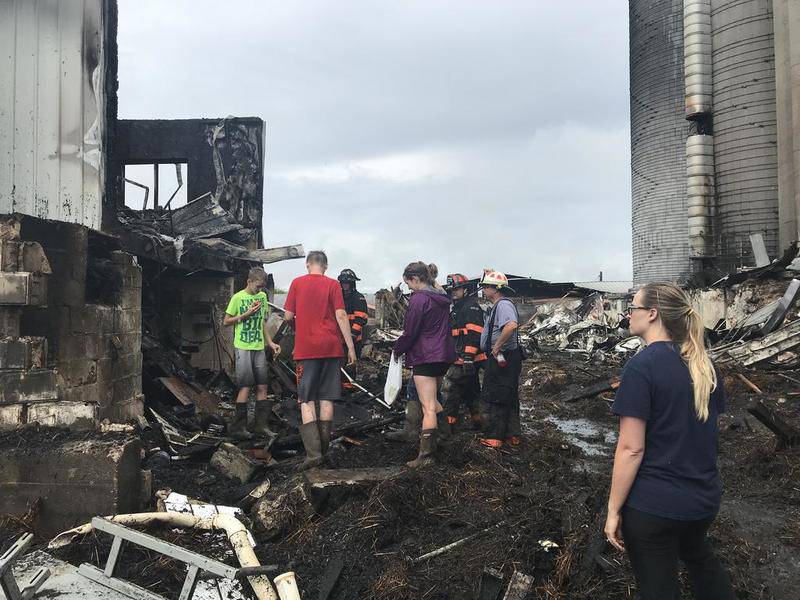 The farm is in a rural area, and crews could not find any hydrants, forcing the department to bring a tanker truck full of water. Firefighters used a bulldozer and crawler with backhoe to pull apart the main structure to put out hot spots and smoldering straw, Hebron-Alden-Greenwood Fire Protection District officials said.