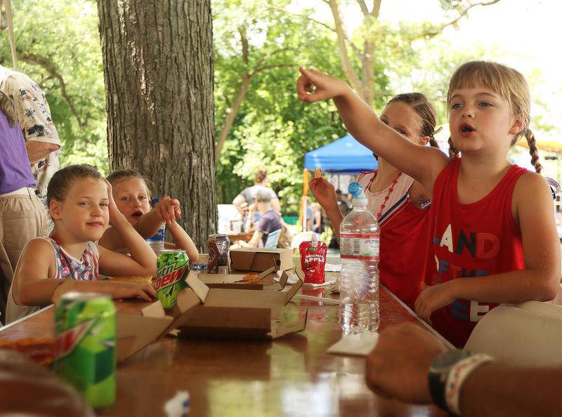 “We’ve had a lot of lemonade and Italian ice already today,” said Nicole Perry, a Crystal Lake resident who rolled into Lakeside Festival with her husband and two daughters, Ava and Devyn, both licking a paper cup filled with blue Italian ice. “The Fourth of July is a big thing in Crystal Lake. I like seeing my kids doing something fun.”