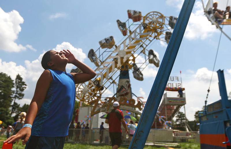 Couple Zach Morrison and Jessica Triznadela were leaving the festival with 4-year-old Kayden, who sat in a stroller eating an ice pop. Below his seat were his carnival winnings: a stuffed animal kingdom, including a turtle, shark, bird and dog.