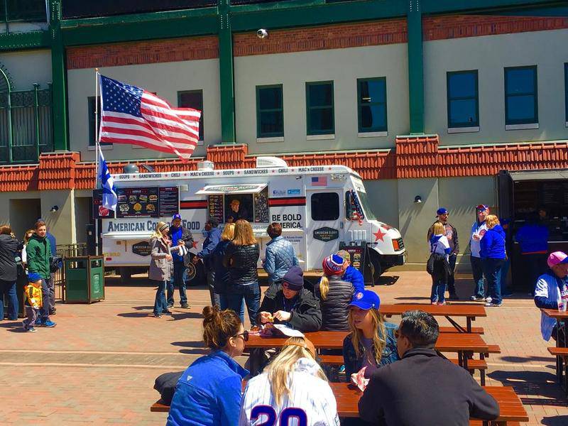 Customers regularly line up at lunchtime before American Glory opens at its weekday parking spot near Chicago’s Willis Tower to get one of its award-winning sandwiches or homemade bread pudding.