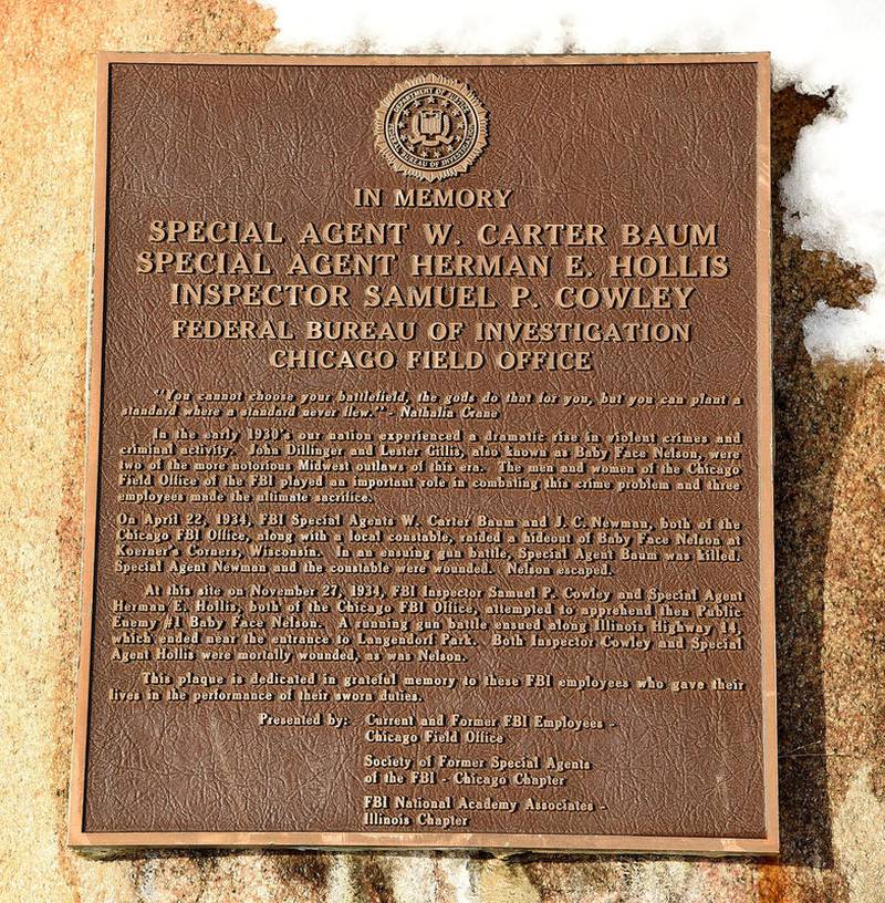Several months later, on Nov. 27, 1934, in what is now Langendorf Park in Barrington, FBI agents Samuel P. Cowley and Herman Edward Hollis encountered Gillis and fellow gangster John Paul Chase in a stolen vehicle. Hollis was killed during the ensuing gun battle. Cowley died from his wounds the next day. Chase and the seriously injured Gillis fled in the agents’ car. Gillis’ body was found the next day near a Skokie cemetery.