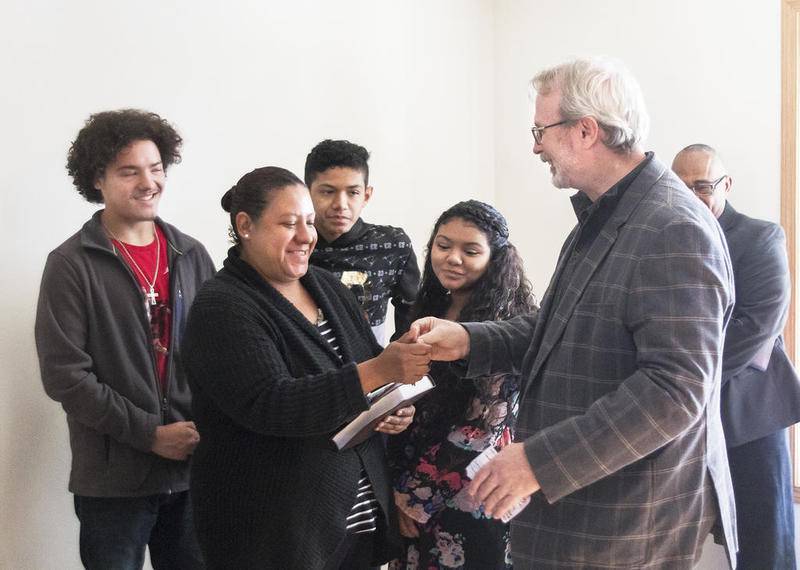 Michael Cole, pastor of the Worship Center in Dixon, blessed the home, and the traditional Habitat housewarming gift – a Bible – was given to the family.