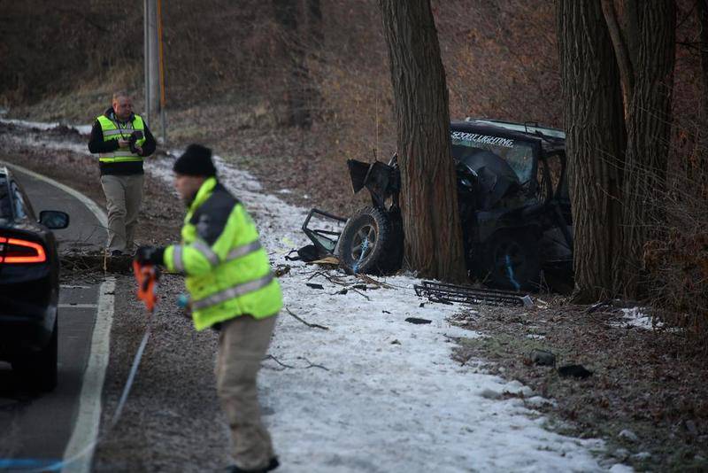 It was foggy, the roads were slick, and a witness said the Jeep was traveling faster than the posted speed limit, which was 45 mph, Rogers said.