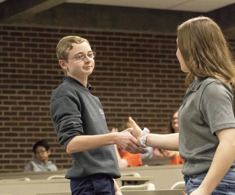 St. Anne Catholic School in Dixon’s quartet of Claire Chrisham, Sam Neisewander, Carson Palmer and Kyle Wolfe won the team competition to give the school its second win in 3 years. Defending champ Rochelle Middle School took second; St. Mary in Dixon and St. Mary in Sterling rounded out the top four.