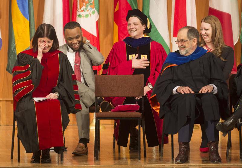 Kathyrn Jaekel, assistant professor of adult and higher education, spoke on behalf of the faculty. She said Freeman “encouraged a sense of belonging” on campus. Jaekel also read some comments her students made about Freeman.