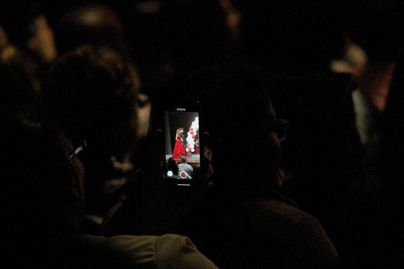 Students made their way across the auditorium stage, pausing to pose for photographs under a balloon archway, before gathering together at the back of the stage.