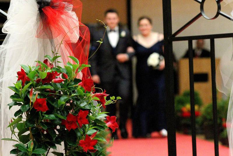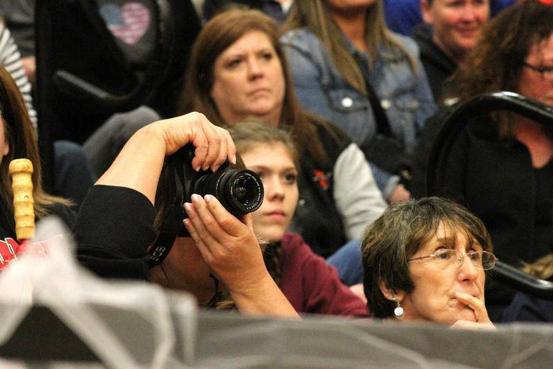 As student couples, attired in their promgoing best, processed into the gym along a red carpet bordered with flowers, parents, friends and family members eagerly took photos and video with their cellphones and cameras.
