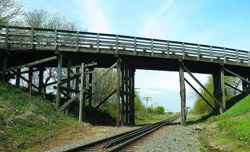 Wooden bridges over the railway once were common throughout the county. The only other one remaining and open is on Mill Road south of Mount Carroll. Another wooden bridge with steel truss supports on Big Cut Road north of Argo Fay closed to traffic last year.