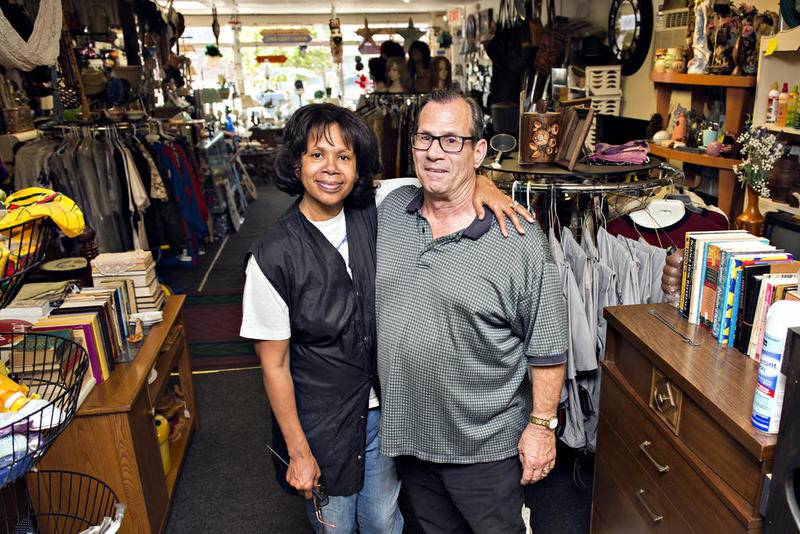 Thelma cuts, colors, and highlights hair for customers of all ages while Jeff stocks the store with merchandise for the same sorts of customers: folks of all ages.