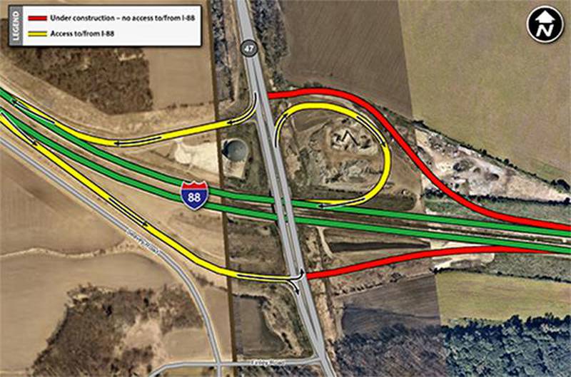 Construction began in April on the interchangewhich now allows access to Route 47 from I-88 from both the east and west. Previously, only eastbound I-88 motorists could exit at Route 47, while only westbound I-88 was accessible from Route 47.