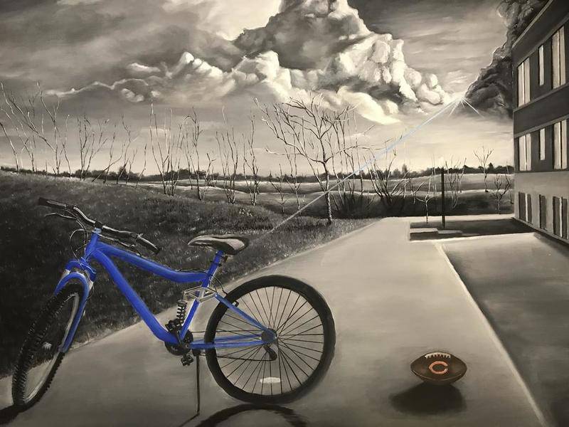 In the lobby of the management department, a painting completed by an NIU art student hangs on the wall: a blue bicycle sits in the shadowy glow of Barsema Hall. Next to it, a Chicago Bears football rests on the sidewalk. Bishop said it serves as a reminder of the two lives they’ve lost, but whose legacies continue to be felt in rippling effects by all who come behind them.